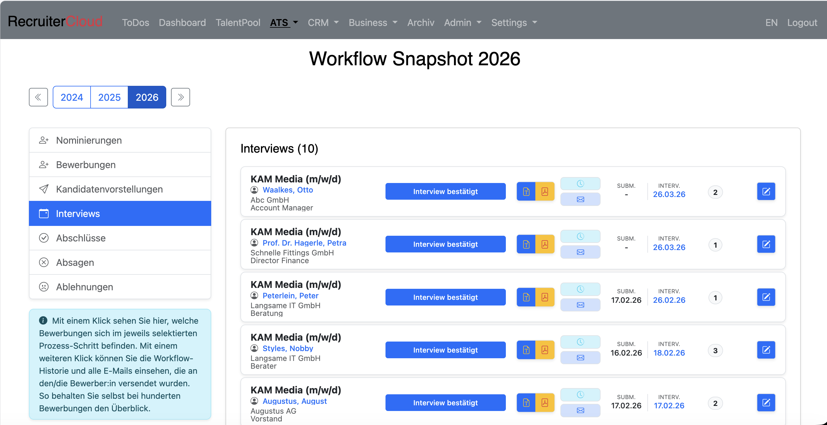Mit dem Abschluss archiviert die RecruiterCloud